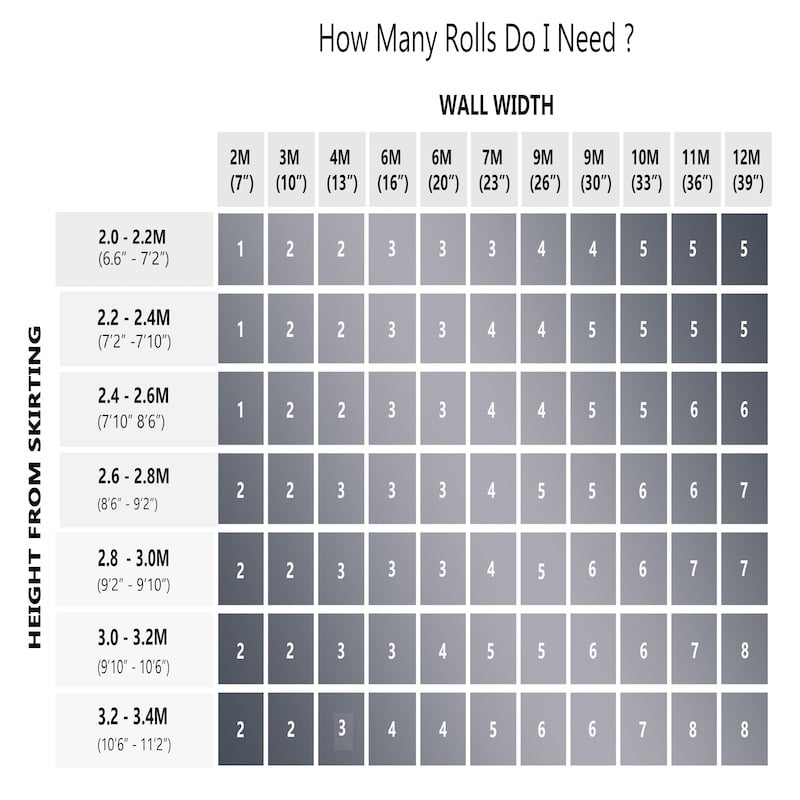 - Please refer to the sizing guide to see how many rolls you require
